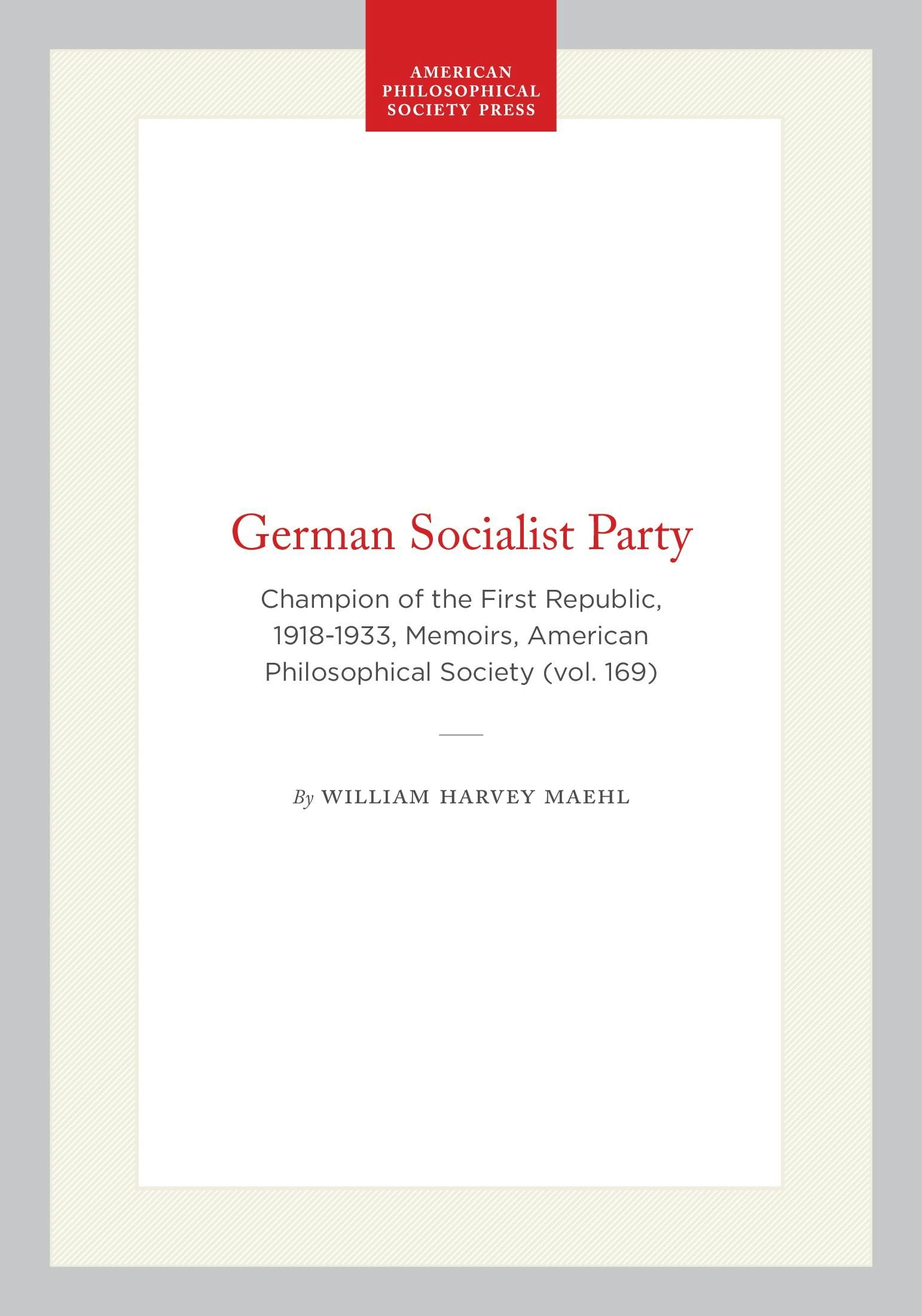 Champion of the First Republic, 1918-1933, Memoirs, American Philosophical Society (vol. 169)