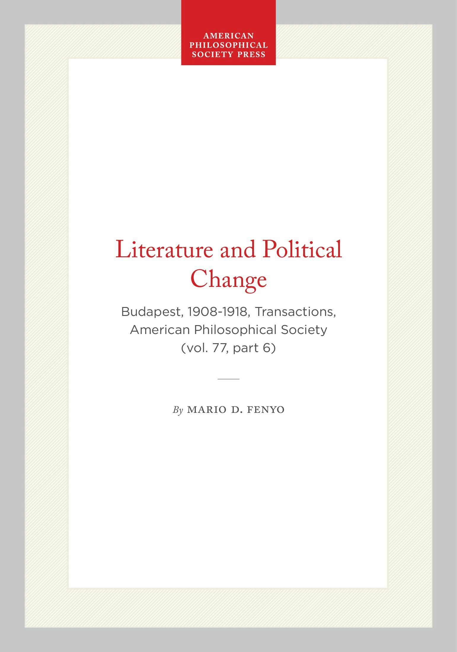 Budapest, 1908-1918, Transactions, American Philosophical Society (vol. 77, part 6)