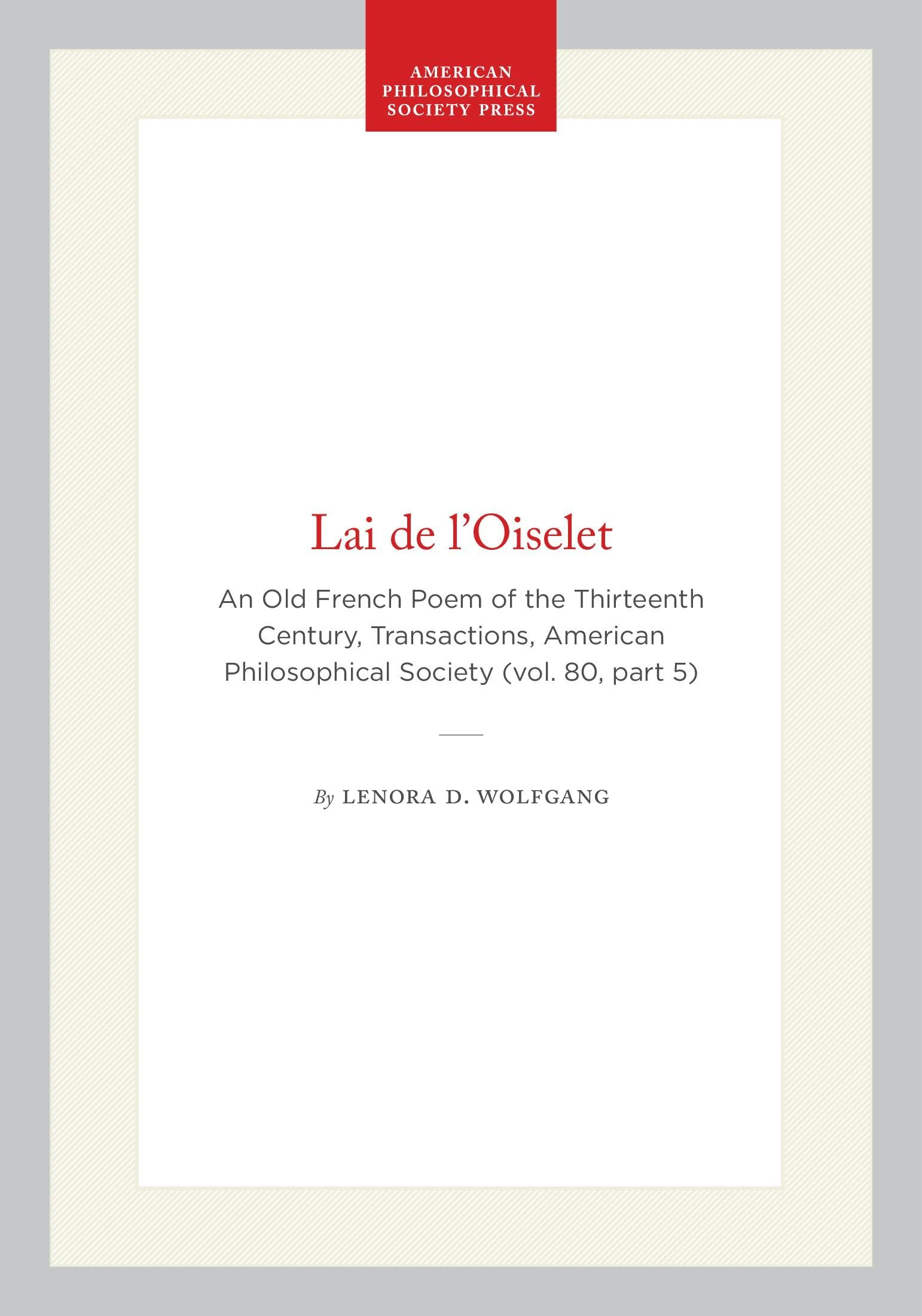 An Old French Poem of the Thirteenth Century, Transactions, American Philosophical Society (vol. 80, part 5)