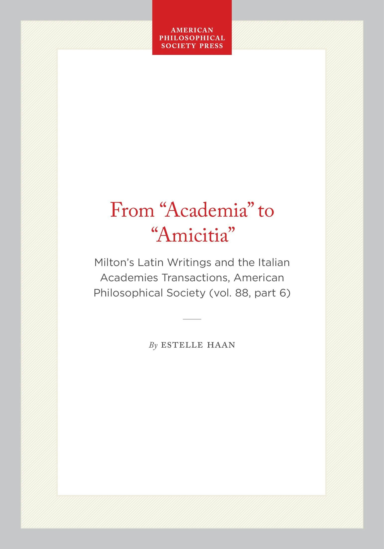 Milton's Latin Writings and the Italian Academies Transactions, American Philosophical Society (vol. 88, part 6)