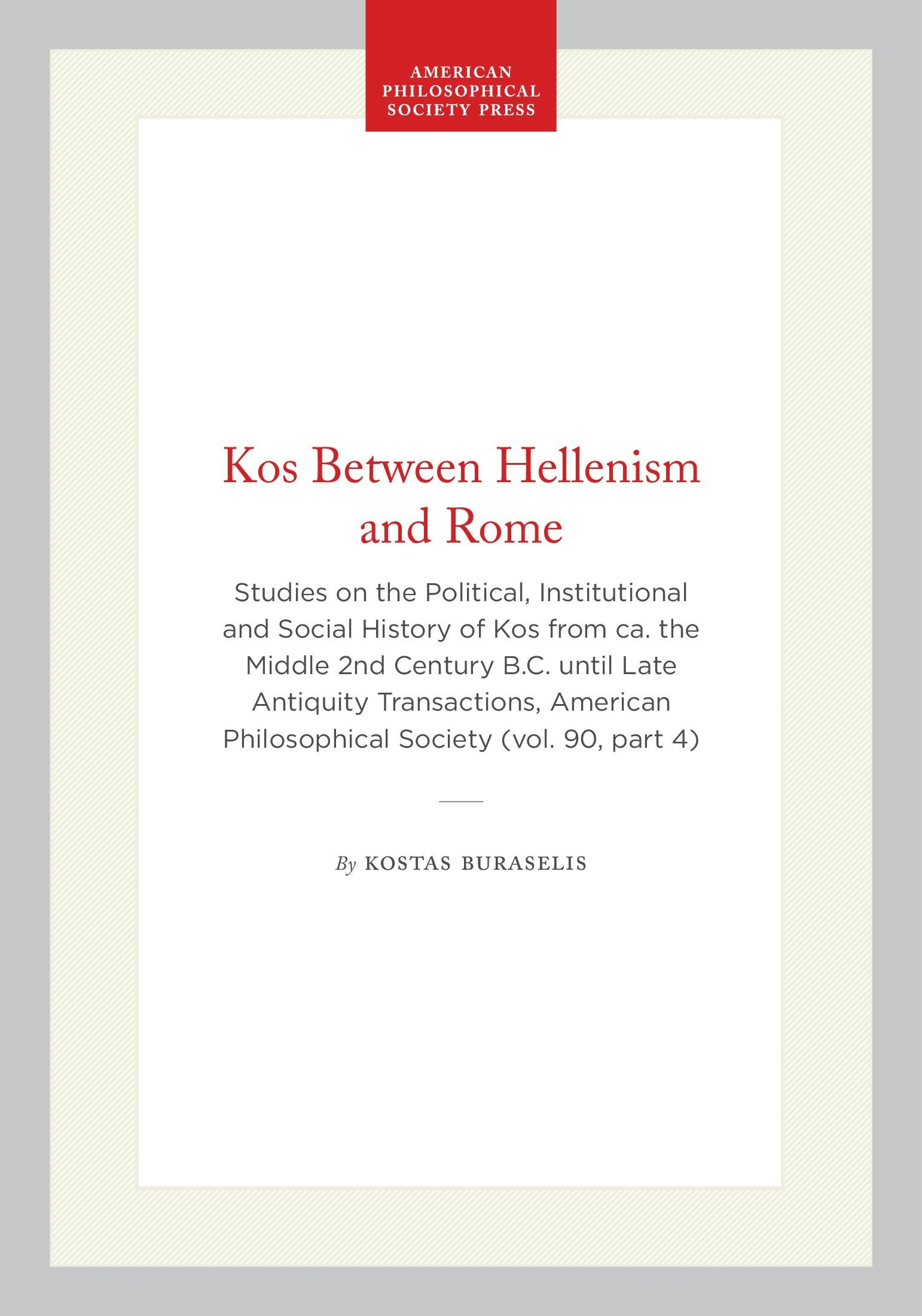 Studies on the Political, Institutional and Social History of Kos from ca. the Middle 2nd Century B.C. until Late Antiquity Transactions, American Philosophical Society (vol. 90, part 4)