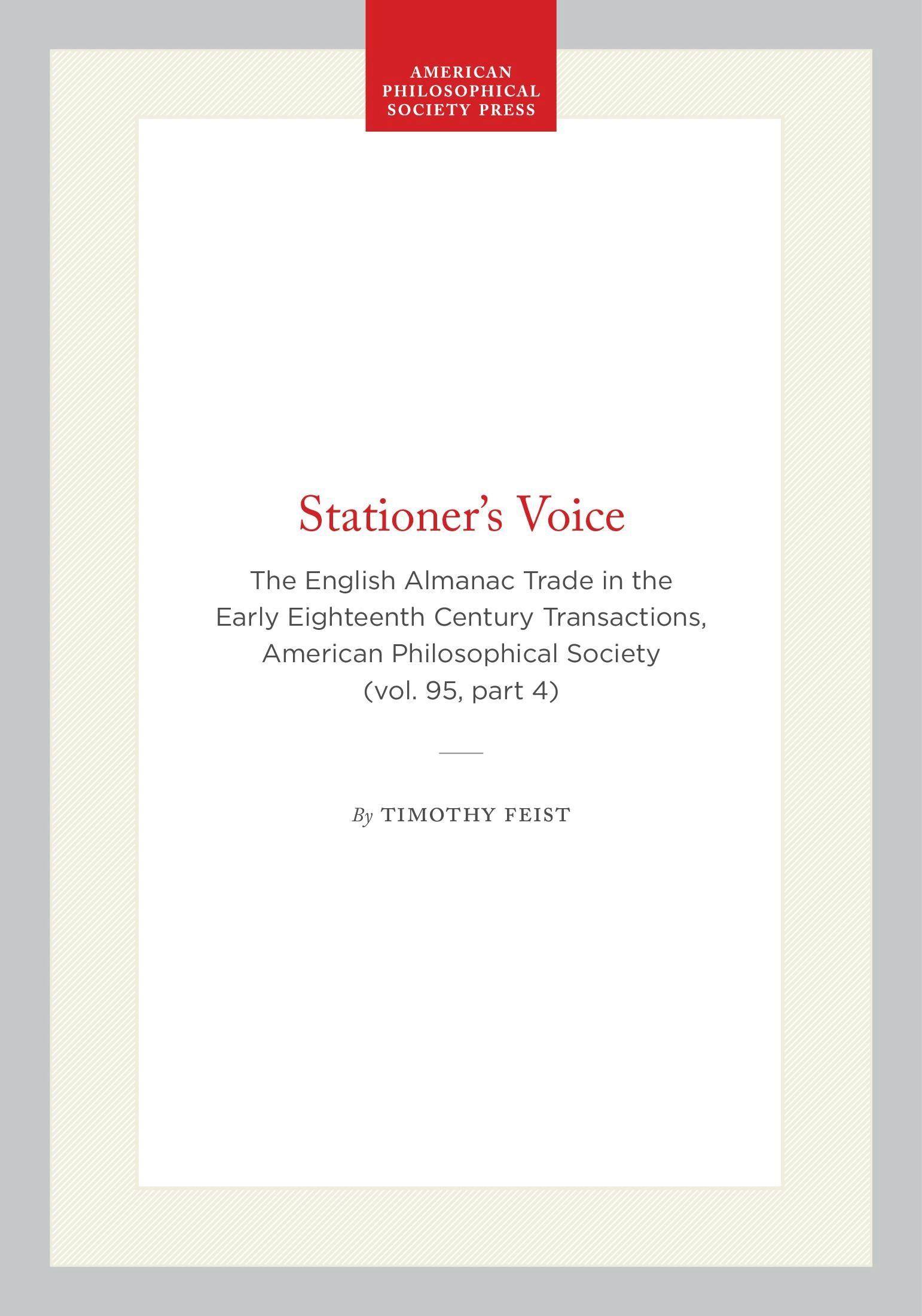 The English Almanac Trade in the Early Eighteenth Century Transactions, American Philosophical Society (vol. 95, part 4)