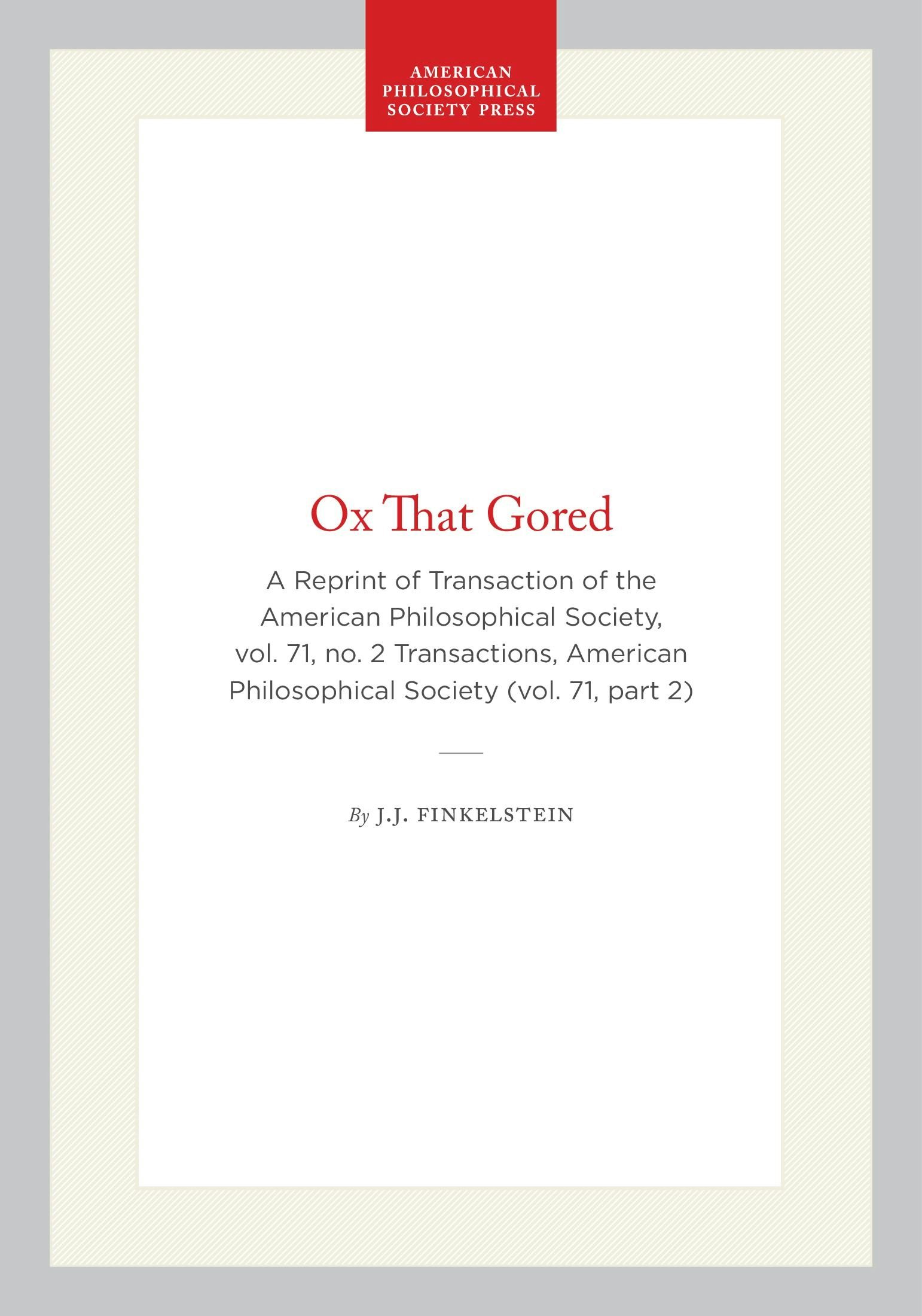 The American Philosophical Society Press Transactions of the American Philosophical Society89 Pages, 7.00 × 10.00 in