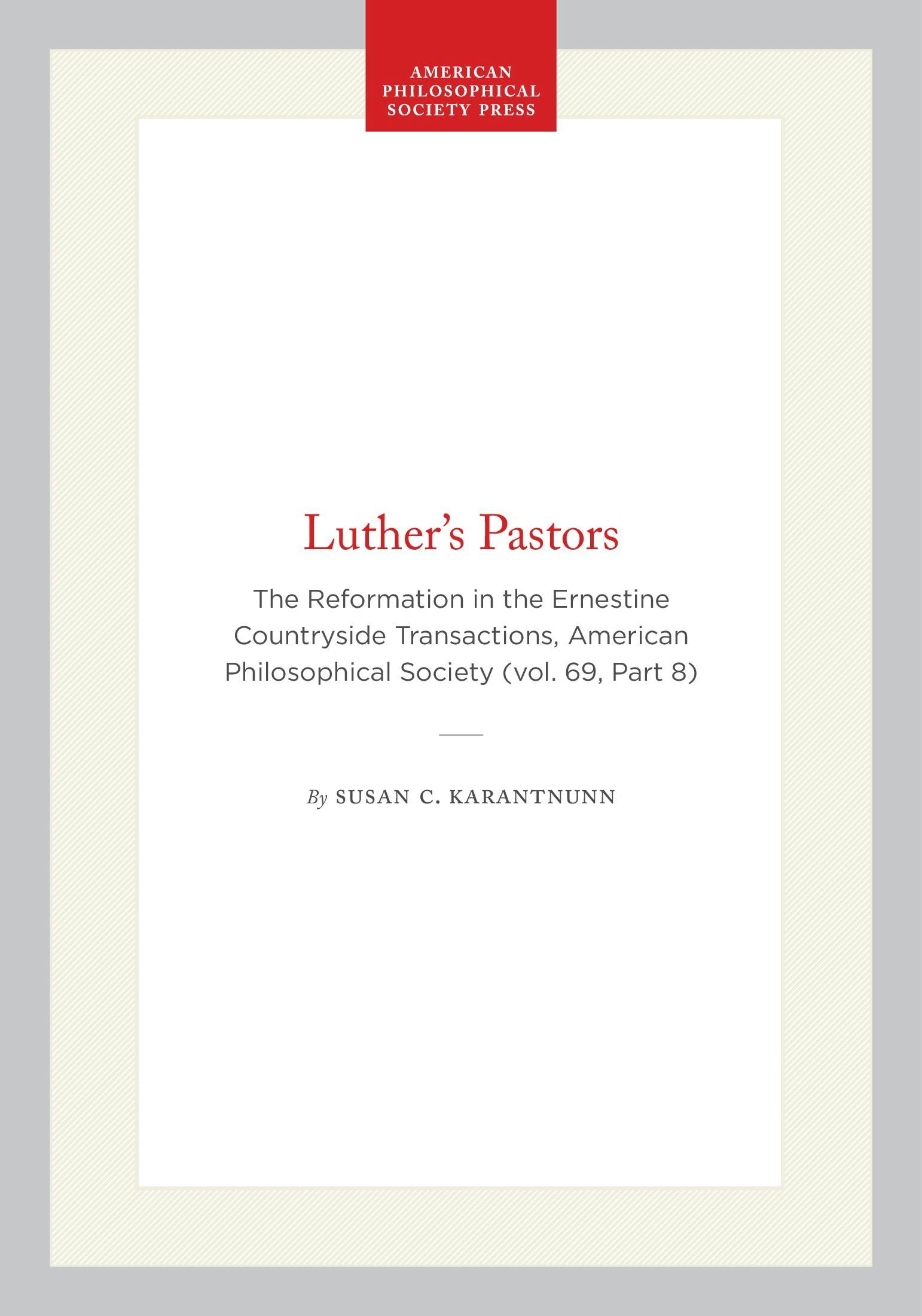 The Reformation in the Ernestine Countryside Transactions, American Philosophical Society (vol. 69, Part 8)