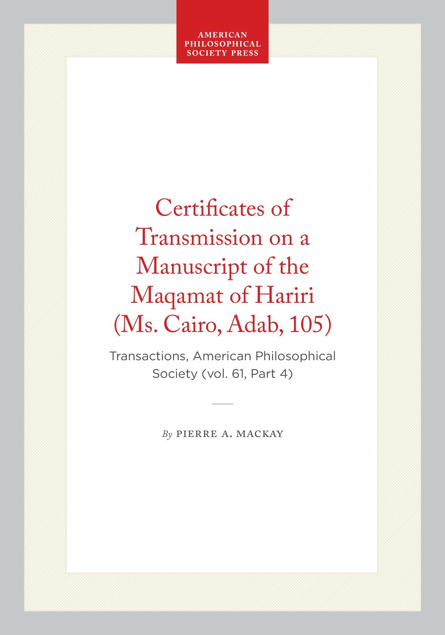 Certificates of Transmission on a Manuscript of the Maqamat of Hariri (Ms. Cairo, Adab, 105)