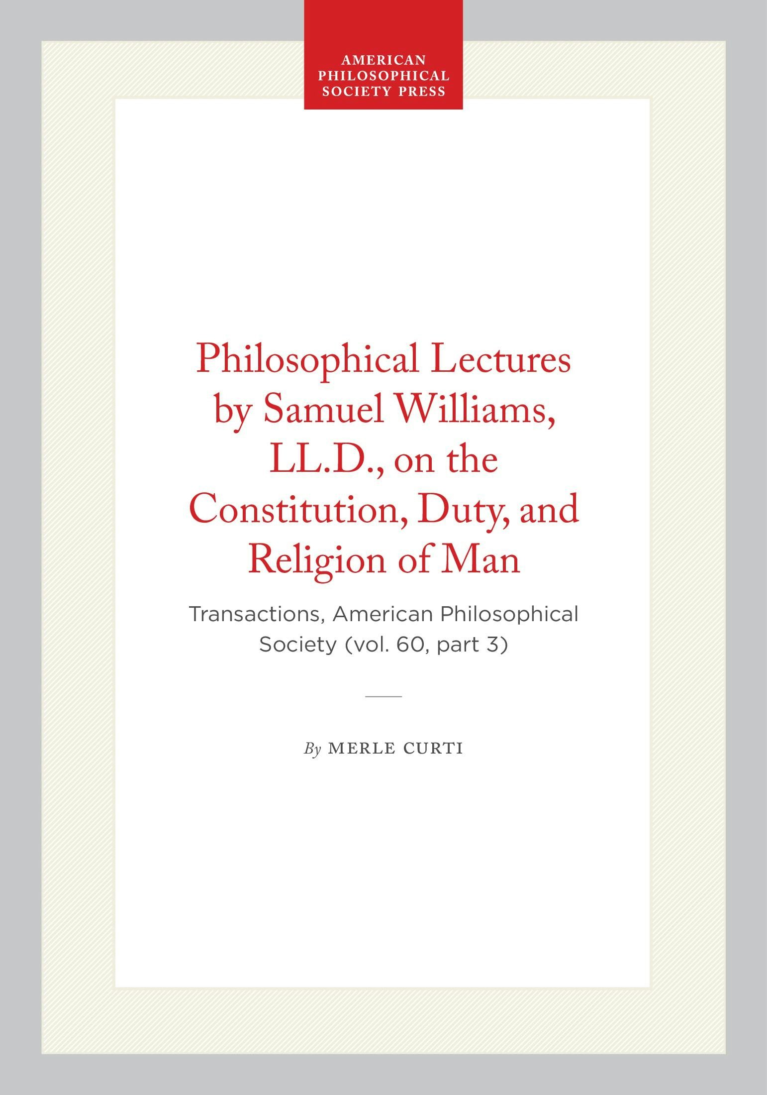 Transactions, American Philosophical Society (vol. 60, part 3)