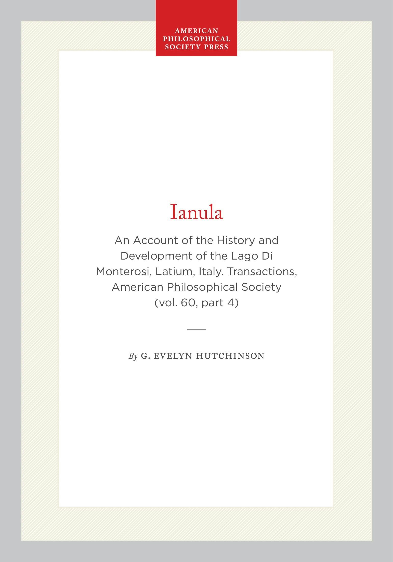 An Account of the History and Development of the Lago Di Monterosi, Latium, Italy. Transactions, American Philosophical Society (vol. 60, part 4)