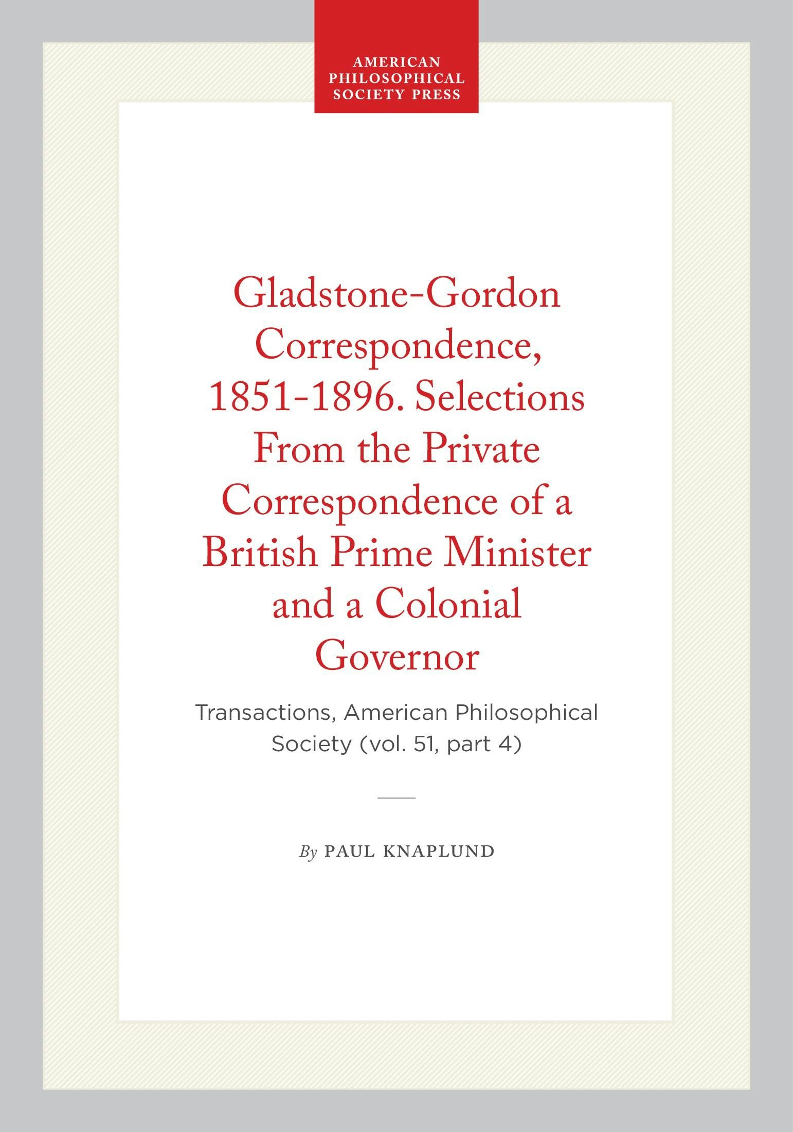 Gladstone-Gordon Correspondence, 1851-1896. Selections From the Private Correspondence of a British Prime Minister and a Colonial Governor