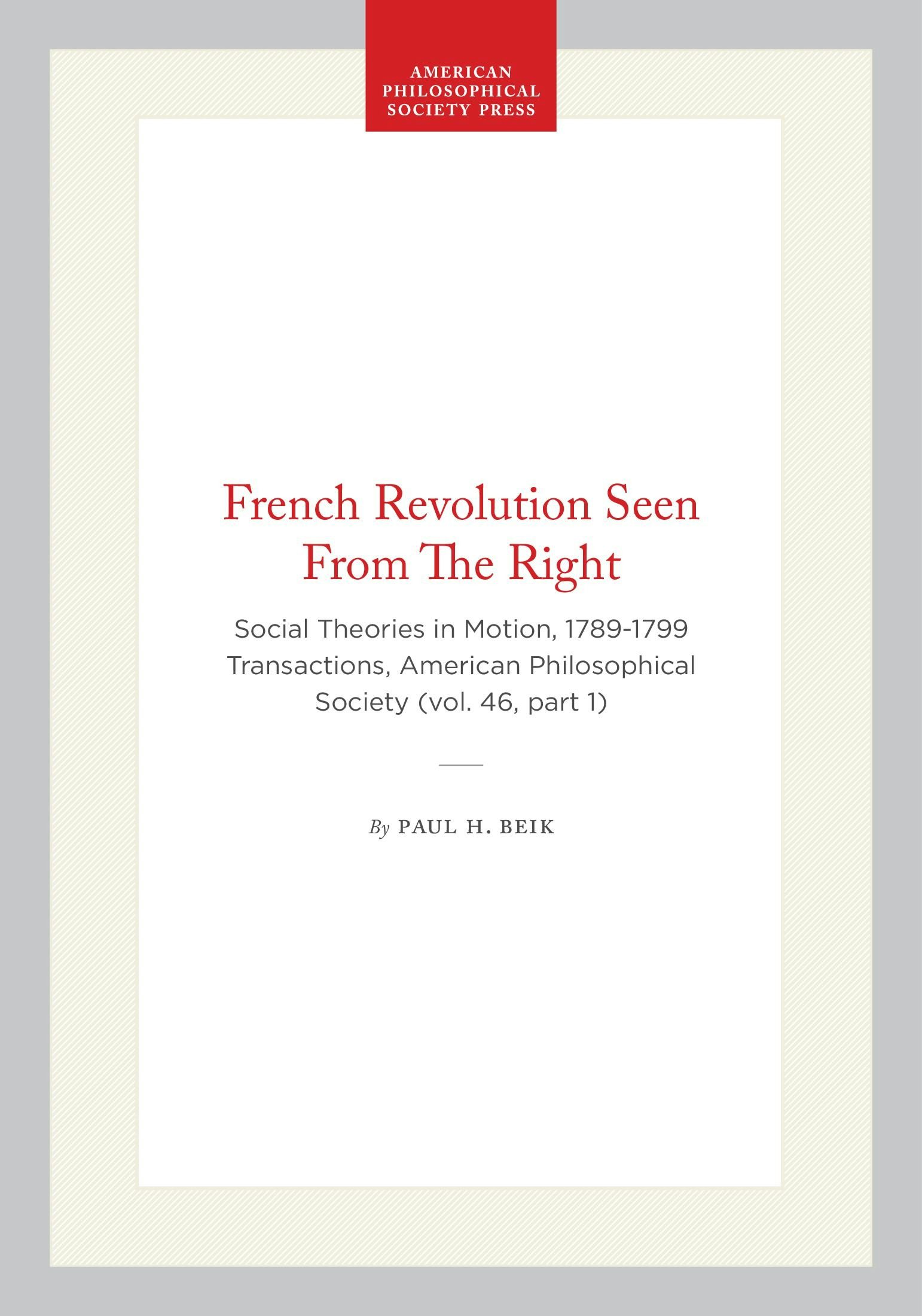 Social Theories in Motion, 1789-1799 Transactions, American Philosophical Society (vol. 46, part 1)