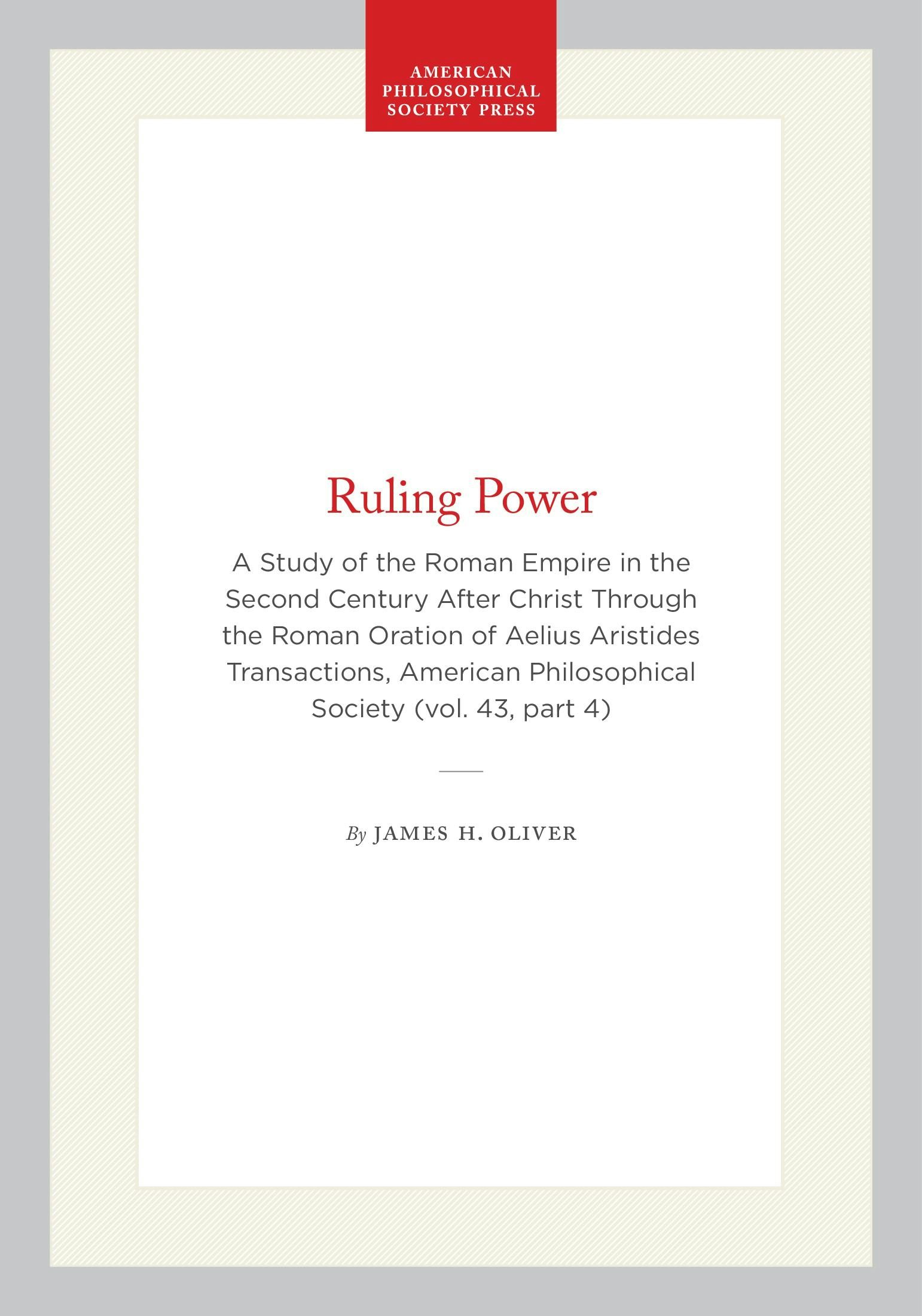 A Study of the Roman Empire in the Second Century After Christ Through the Roman Oration of Aelius Aristides Transactions, American Philosophical Society (vol. 43, part 4)