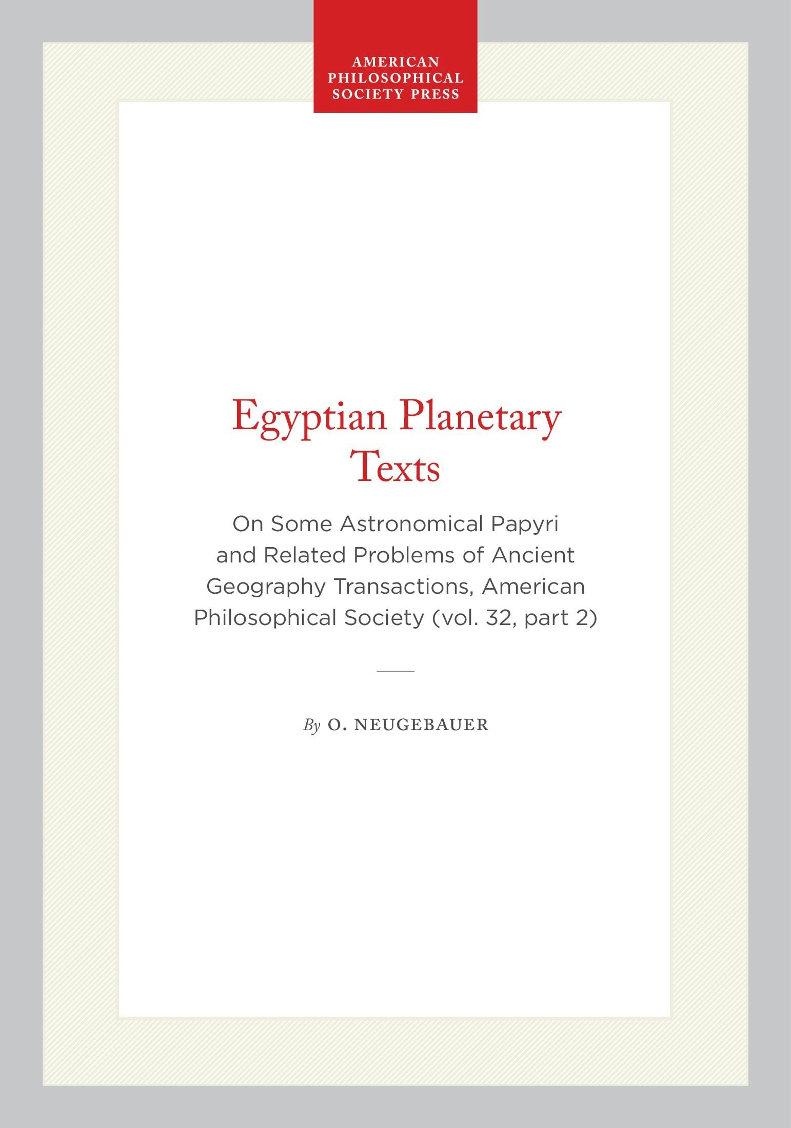 On Some Astronomical Papyri and Related Problems of Ancient Geography Transactions, American Philosophical Society (vol. 32, part 2)