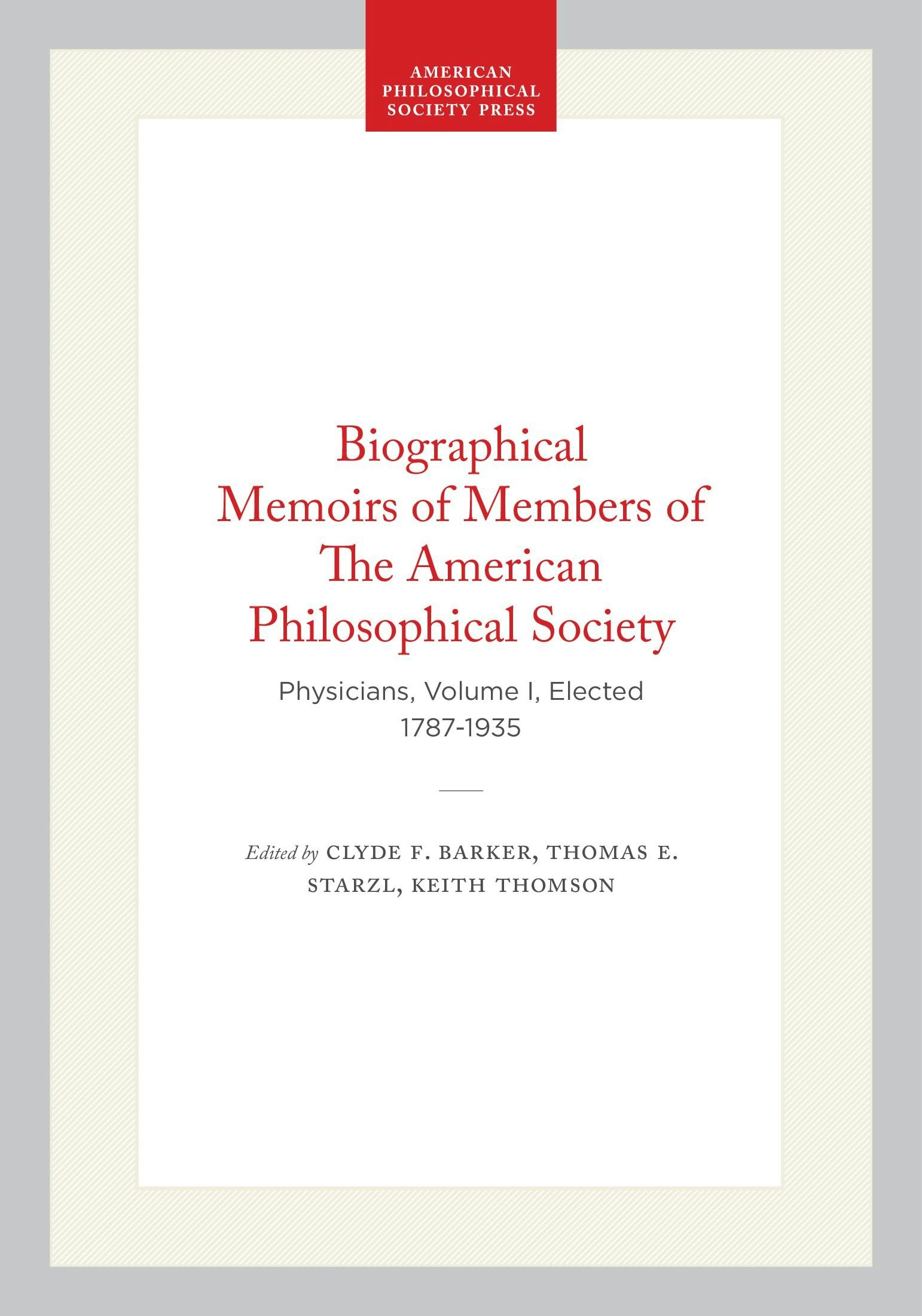 Physicians, Volume I, Elected 1787-1935