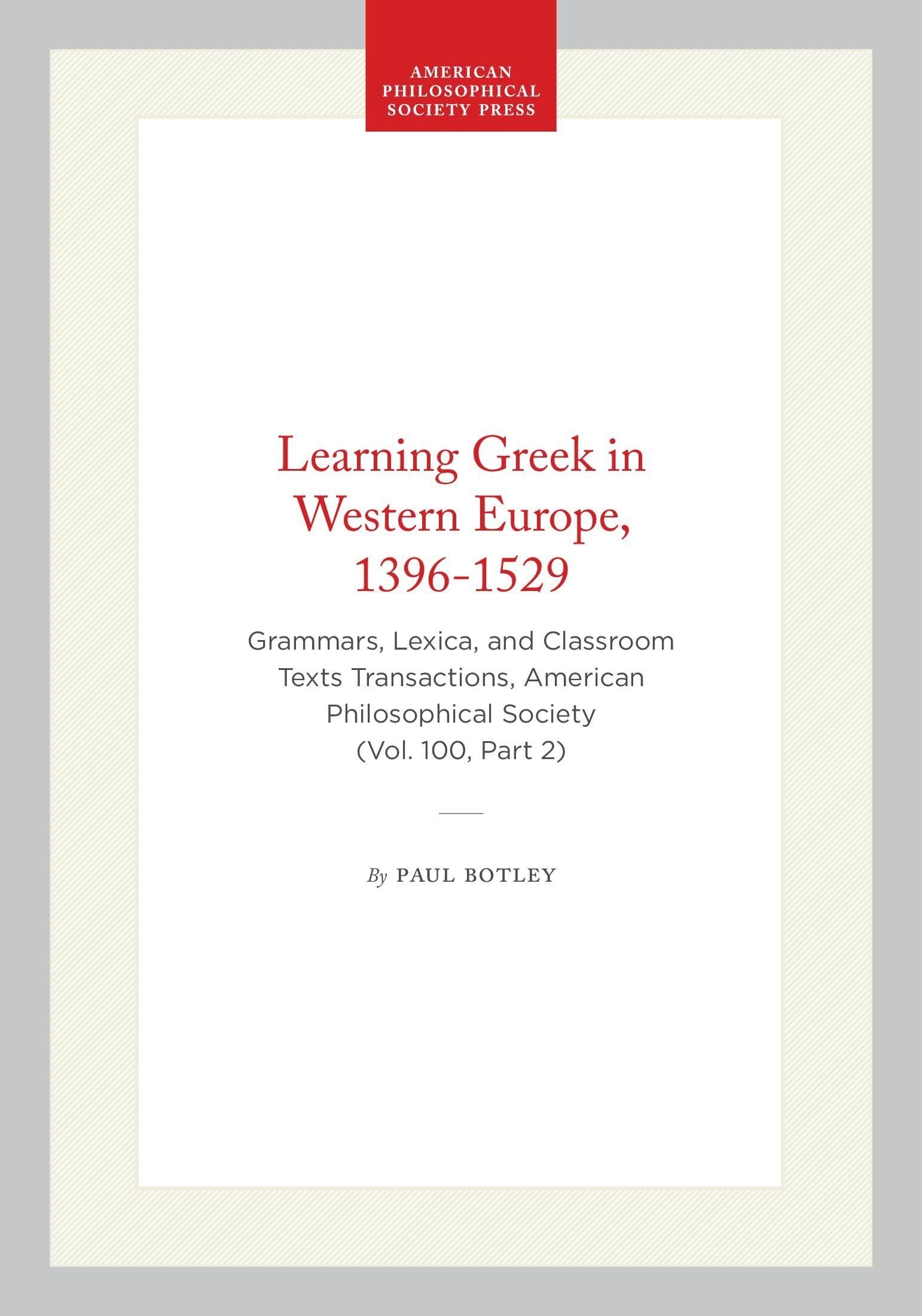 Grammars, Lexica, and Classroom Texts Transactions, American Philosophical Society (Vol. 100, Part 2)