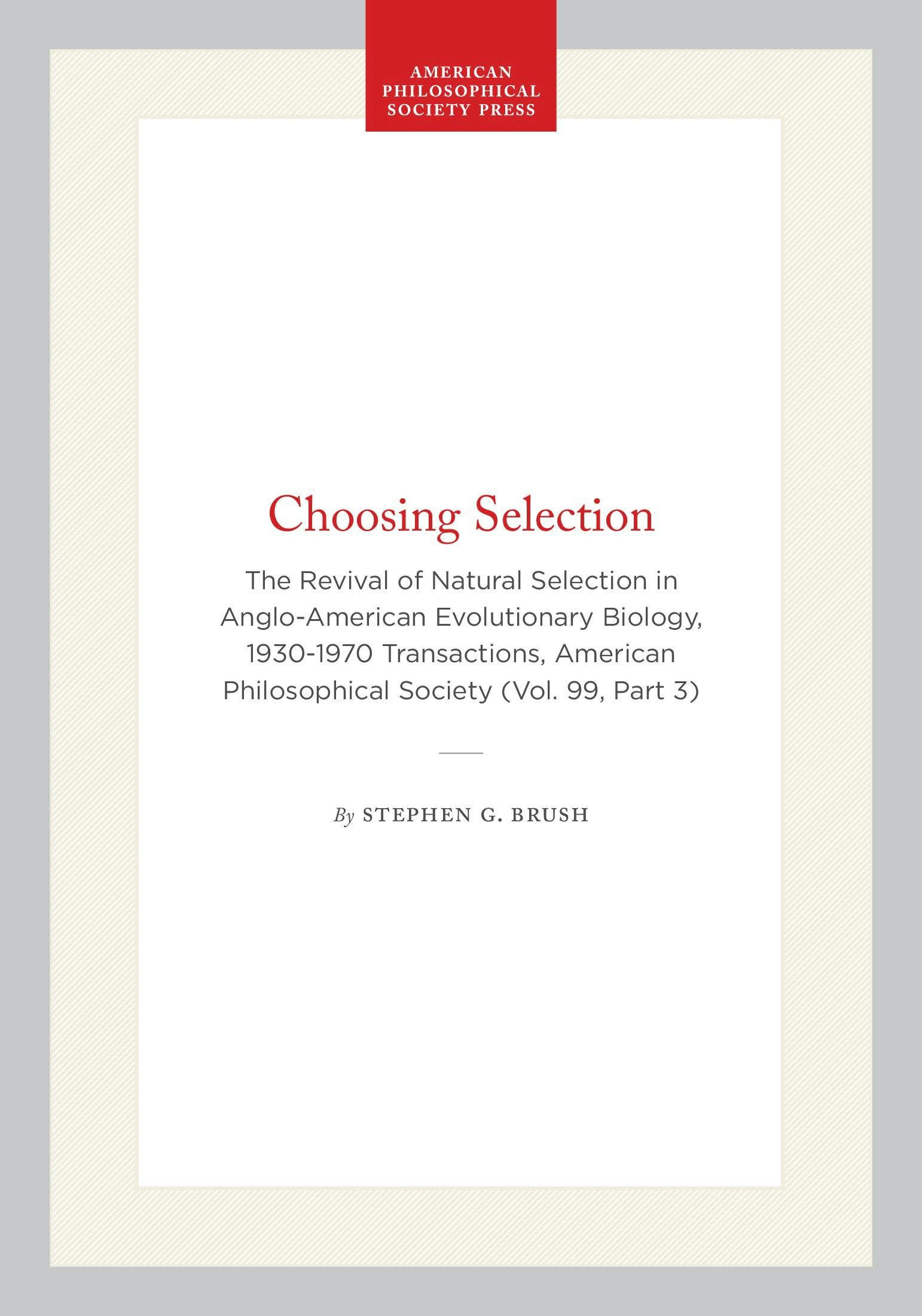 The Revival of Natural Selection in Anglo-American Evolutionary Biology, 1930-1970 Transactions, American Philosophical Society (Vol. 99, Part 3)