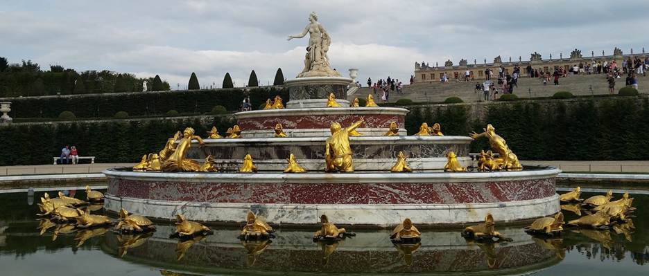 It’s only fitting that the artwork adorning the central group of three fountains at the base of the chateau has a theme that would complement the literally groundbreaking technical work done to make the water do what men wanted it to do. Charles Le Brun and the Marsy brothers thought Ovid’s story about Latona made a fitting tribute to a King who, through his largesse, could control water and turn a dry landscape into a lush garden (rendering him as the god Jupiter, metaphorically).