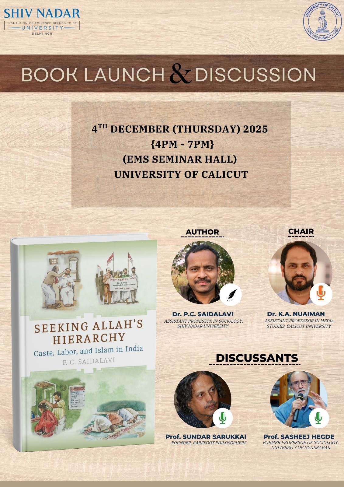 P. C. Saidalavi, author of Seeking Allah’s Hierarchy, will discuss his book at a book launch event at the University of Calicut on on Thursday, December 4, 2025 at 4 p.m. IST.